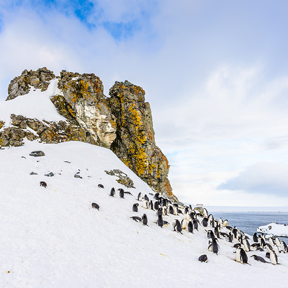 This island is located on the South Shetland Islands, tucked into Moon Bay of eastern Livingston Island. It is one of the most beautiful sites in the South Shetlands. The 2-km long island is crescent-shaped and home to approximately 3,300 breeding pairs of chinstrap penguins. Whales may be seen off shore against a stunning back drop of surrounding mountains.